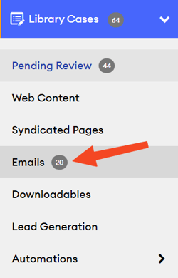 - Check the Number Next to "Emails": In the left navigation, the number displayed next to Library Cases > Emails indicates the count of automated emails that require your attention. Keep an eye on this number to ensure timely reviews and approvals.